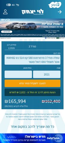 מודל 3 פרפורמנס 89,000 קילומטר בלבד! רכב במצב מעולה 4 צמיגים חדש ינואר 2026!! מחירון משוקלל 166 אלף!