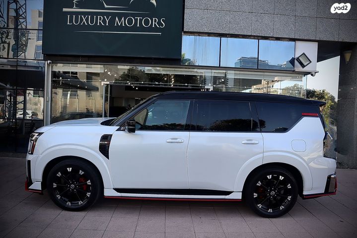 לקשרי מוטורס הרצליה הסוכנות המובילה ליבוא ושיווק יוקרה!יחידה בארץ!ניסאן ארמדה (פאטרול) הדגם החדש מיוחד "ניסמו" עם 470 כח סוס בנזין!קיים בלבן ובשחור!פנים אדום עם שחור 7 מקומות 4X4 עם מתלי אוויר וכל תוספת שרק קיימת!! חדש לחלוטין מודל 2026 עם 0 קילומטר!!לעוד תמונות ופרטים כנסו לפייסבוק/אינסטאגרם או האתר שלנו LUXURY MOTORS HERZLIYA ,אולם תצוגה רחוב גלגלי הפלדה 11 הרצליה פיתוח