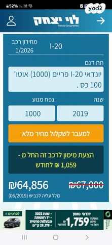 יונדאי i20 שנת 2019 , דגם PRIME , יד ראשונה. רכב שמור ומטופל היטב, במצב מצוין. יד ראשונה, 156,000 ק"מ. הרכב נמכר אך ורק עקב קבלת רכב עבודה, לא בגלל תקלה או בעיה. שמור מאוד, נסיעה חלקה ואמינה, טופל בזמן וללא הזנחה. דגם PRIME מאובזר, חסכוני בדלק ונוח לנסיעות עירוניות ובינעירוניות. הזדמנות מצוינת למי שמחפש רכב אמין, שמור ומטופל.