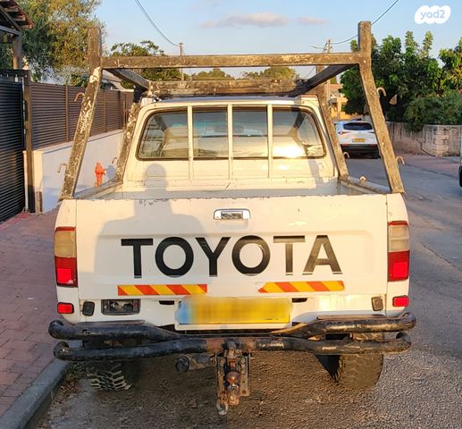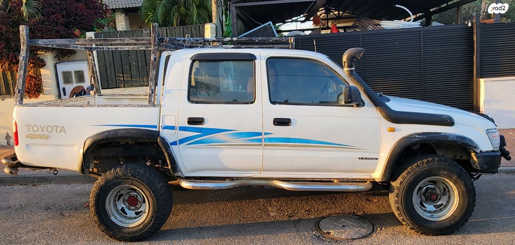 טויוטה היילקס שנת 1999 קבינה כפולה, ידנית מנוע 2,400 דיזל 90 כ"ס מנוע לאחר אוברול ב600,000 קילומטר, מצב מכאני מצויין מזגן עובד. טסט לחצי שנה רשום ברישיון- הגבהות 2.5 אינצ', כננת, וו גרירה וצמיגים מידה 31. הוחלפו 4 צמיגי שטח 100% חדשים לא מופיע בתמונות. שנורקל וגגון טלסקופי שמחובר לארגז נפתח ונסגר מעל הקבינה עם יכולות העמסה גבוהים. הרכב משמש לנסיעה יומיומית , סוס עבודה. יש גמישות בקטנה