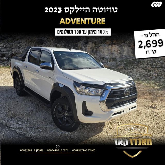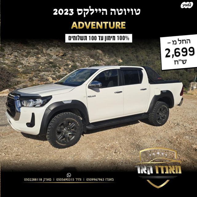 טיוטה היילקס 2023 יד 01 קמ 40000 דגם ADVENTURE עם 2500 טורבו דיזל 150כס מימון 100 עד 100 תשלומים ניתן לראות במאנדו קאר בWAZE