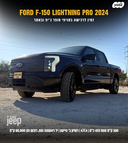 זמין לרכישה פורד F150 לייטנינג PRO | רשיון ב היישן | הוצאה מוכרת מלאה לבעלי עסק | שנת 2024 | יד 00 (רוכש 01) | 80,000 ק"מ | טנדר חשמלי מלא | 380 ק"מ טווח | 452 כ"ס | 4X4 | נעילה אחורית חשמלית | ריפודי וניל צבע אפור | פתיחת בקרבה לרכב | תאורת לד | מולטימדיה 12 אינץ' | גרירה 3.5 ט, וו גרירה נשלף | גנט 18 | צבע כחול | מצלמה 360, שמירה על נתיב, בלימה אוט, קרוז אדפטיבי | רכב שמור | אופציה למימון וטרייד