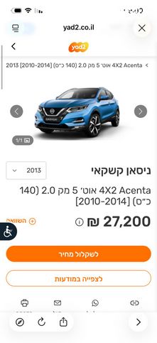 למכירה: ניסאן קשקאי 2013 יד 4. כל הבעלים פרטיים . מצב מצוין.200,000 קמ. צבע כסוף טסט עד יולי 2026 שמור ומטופל בקפדנות ללא תאונות מחיר אטרקטיבי