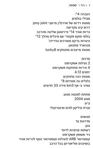 רכב מושקע לשטח ומוכן תוספות במאות אלפי שקלים מצורף בתמונה וזה לא הכל