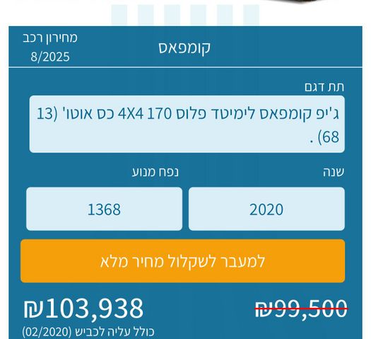 ג'יפ, קומפאס, בצבע לבן, שנת 2020, 71000 ק"מ מצב טוב מאוד עם כל האופציות כולל עור לבן וגג נפתח, אחרי טיפול במוסך מורשה