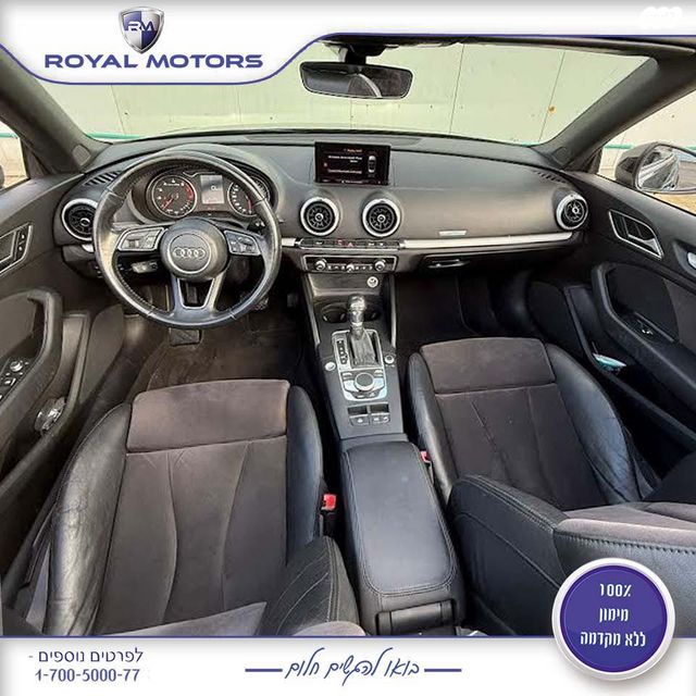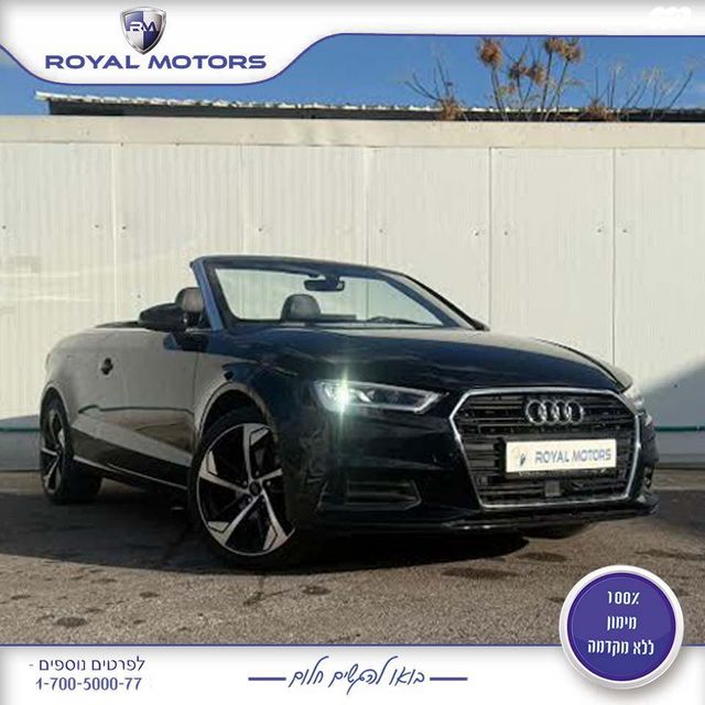 אוודי A3 קבריולט שנת 2019. 75,000 ק"מ. נפח מנוע:1500 סמ"ק טורבו בנזין. חישוקי מגנזיום,מולטימדיה,מושבי עור,גג פנוראמי,הנעה בכפתור,פנסי LED+xenon ועוד. אפשרות למימון מלא,ללא מקדמה. אפשרות לטרייד אין