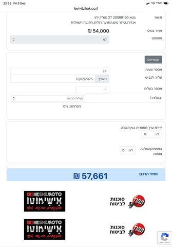 24 שעות. מטופל במטרו כ"ס. באחריות עד פברואר 26. מיגון מלא. מוסים קדימה ואחורה.