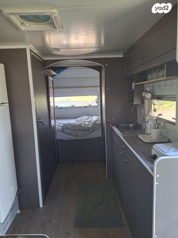 קראוון ישראלי 2*5.30 מטר עם מיטה זוגית, מקלחת שירותים, פינת סלון נפתחת למיטה זוגית, מטבחון, מקרר ומזגן, מיכל מים, משאבה, חימום מים בגז ומערכת סולארית