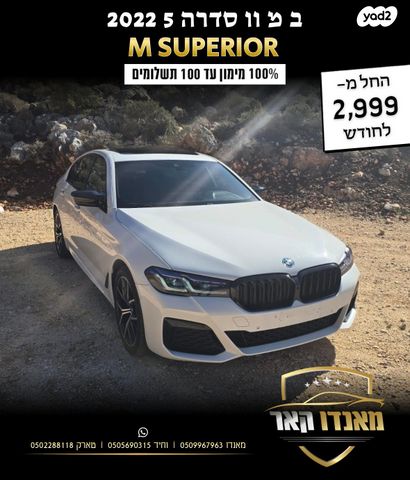 BMW סדרה 5 2022 היברידית פלאג אין דגם M SUPERIOR יוקרהביצועים ואיכות בלי פשרות 292 כ"ס מנוע 2000 היברידי 70000 ק"מ בלבד יד 02 רכב שמור ברמה גבוהה במיוחד מאנדו קאר ירכא Waze מאנדו קאר ירכא