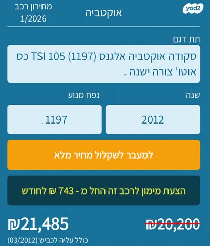 סקודה OCTAVIA בנזין מנוע 1200 רכב שמור מאוד טסט עד 28.3.2026 מערכת מולטימדיה + מערכת כפתור לרכב צילום 24/7 לפרטים לירון