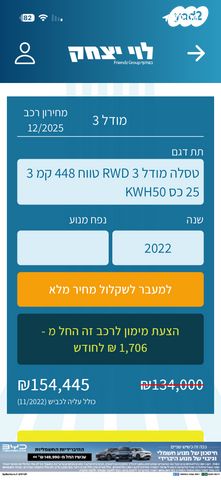טסלה מודל 3 שנת 2022 עדיין באחריות. שמור בקנאות עם צבע מיוחד. תוספות מיוחדות וריפודים לבנים. קילומטר נמוך הוחלפו 4 גלגלים חדשים. תוספות: מערכת אוטופילוט שמבצעת חנייה אוטומטית והעברת נתיב אוטומטי (מחיר 19,000 לפני מיסוי). מסך במושב האחורי עם מערכת שמע, כיוון מיזוג טמפרטורה. גלגלי מגנזיום. תוספת כנפונים בחלונות האחוריים. ציפוי לרכב PPF למניעת שריטות ומכות יבשות.
