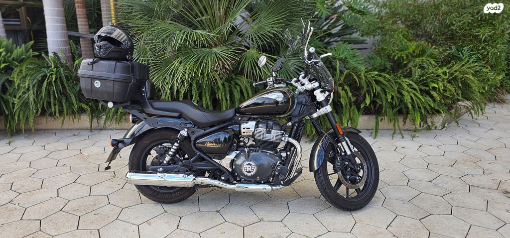 סופר מטאור 650 שמור ומטופל כולל כיסא טורינג משקף קדמי ארגז אחורי לשתי קסדות ימסר עם שתי ארגזי צד ומגן מנוע.
