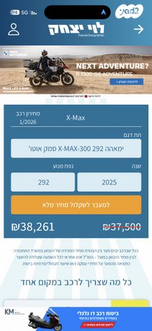 קטנוע חדש מהחברה עלה לכביש ב29/07/25 עבר טיפולי 1,000 ו5,000 במוסך מורשה. 0 תאונות/החלקות/מכות. שמור ברמה הכי גבוהה. מגיע עם מנעול דיסק, שרשרת ומתקן לפלאפון. מתוקנות 2 מערכות איתוראן בקטנוע.