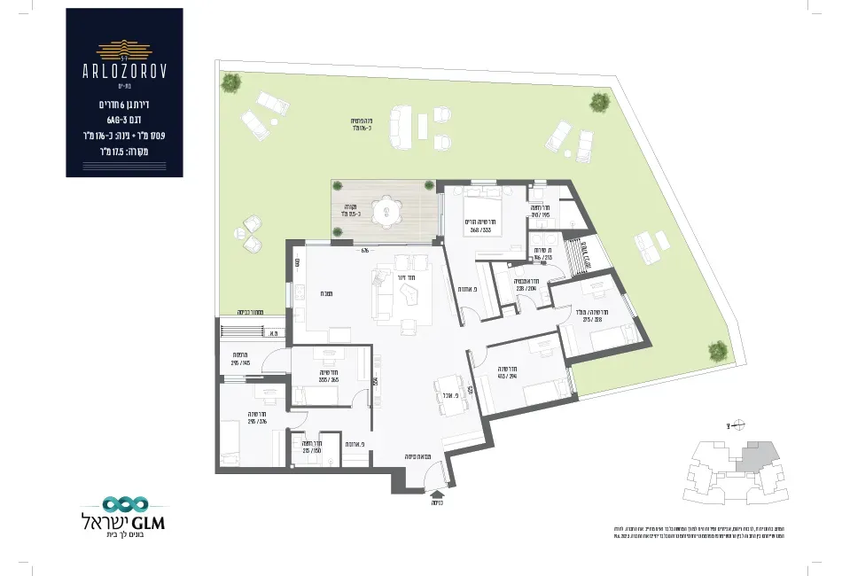 הפרויקט מציע דירות 5 ו6 חדרים, דירת גן ופנטהאוז / גג במגוון גדלים וקומות.