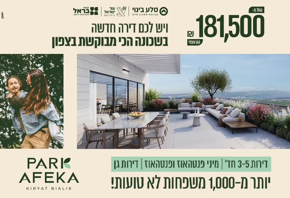 הזדמנות אחרונה ליהנות מתנאי תשלום מיוחדים – 10% בחתימה ו-90% באכלוס. בלב שמורות הטבע עין אפק ונחל נעמן, מקימות החברות סלע בינוי, משכנות בראל וצור ישראל, את רובע המגורים החדש פארק אפקה בקריית ביאליק.