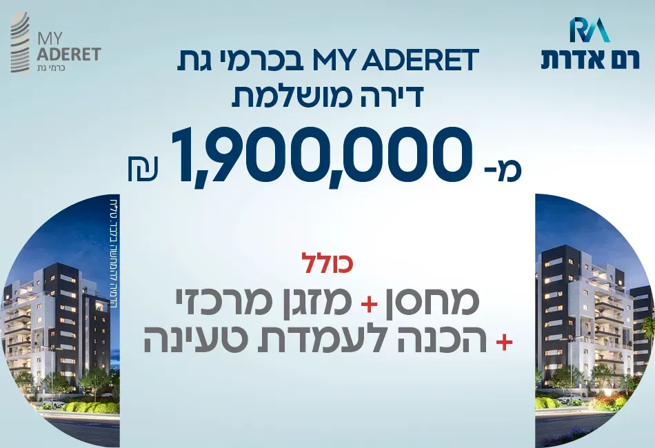 MY ADERET - פרויקט מגורים איכותי מבית קבוצת רם אדרת, הממוקם בלב אחת השכונות המבוקשות בישראל , כרמי גת, קריית גת
