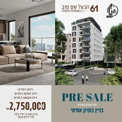 יוסי קטש גאה להציג למכירה את פרויקט בעל שם טוב 61 פתח תקווה בניין בוטיק ייחודי רק 13 דירות עם חדר דיירים מפנק !