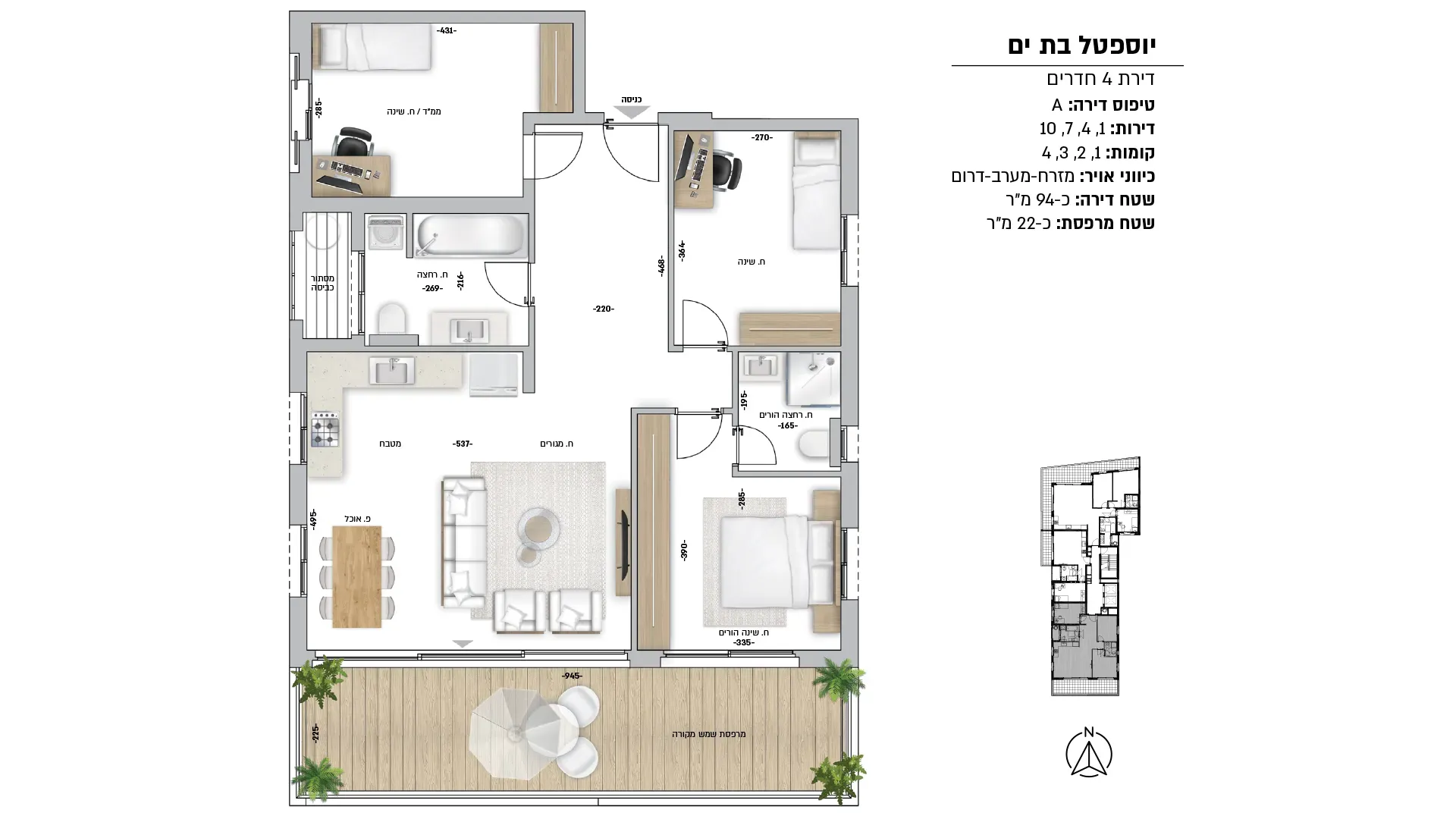 הפרויקט מציע דירות 2, 4 ו5 חדרים ופנטהאוז / גג במגוון גדלים וקומות.