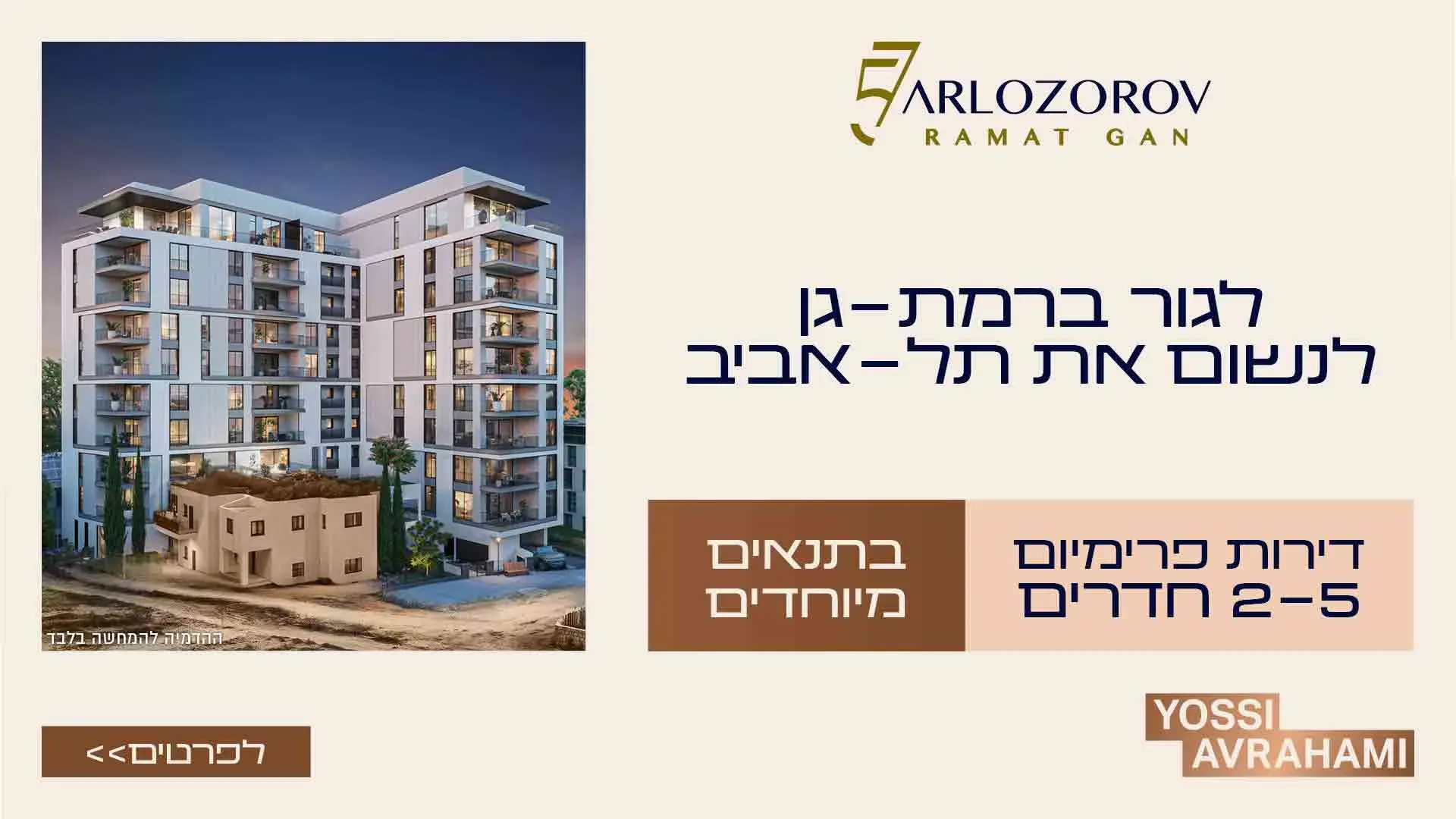 לגור בסטנדרט הבלתי מתפשר של חברת יוסי אברהמי, במיקום הטוב ביותר בר"ג-במרחק נגיעה מהקצב של ת"א!