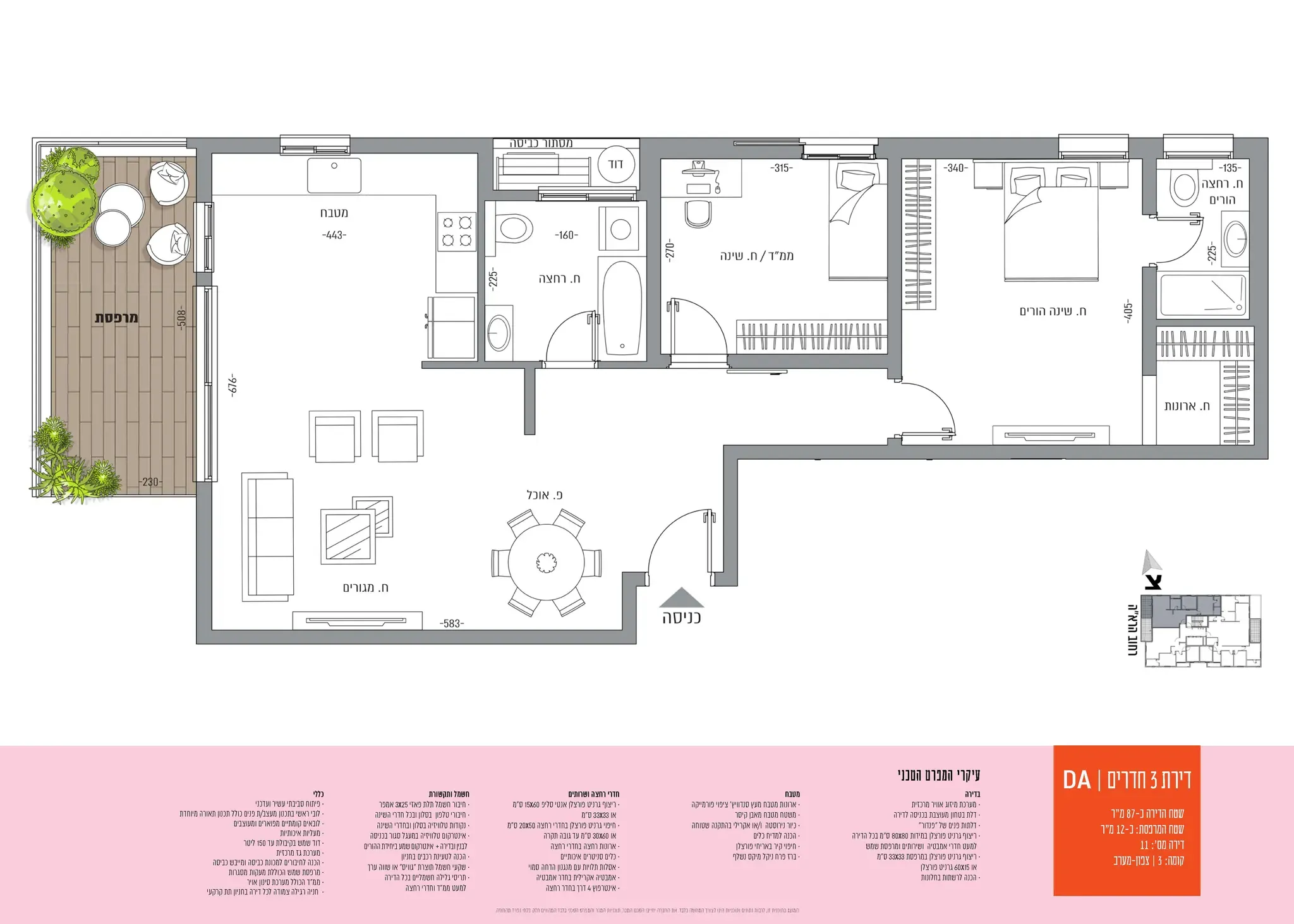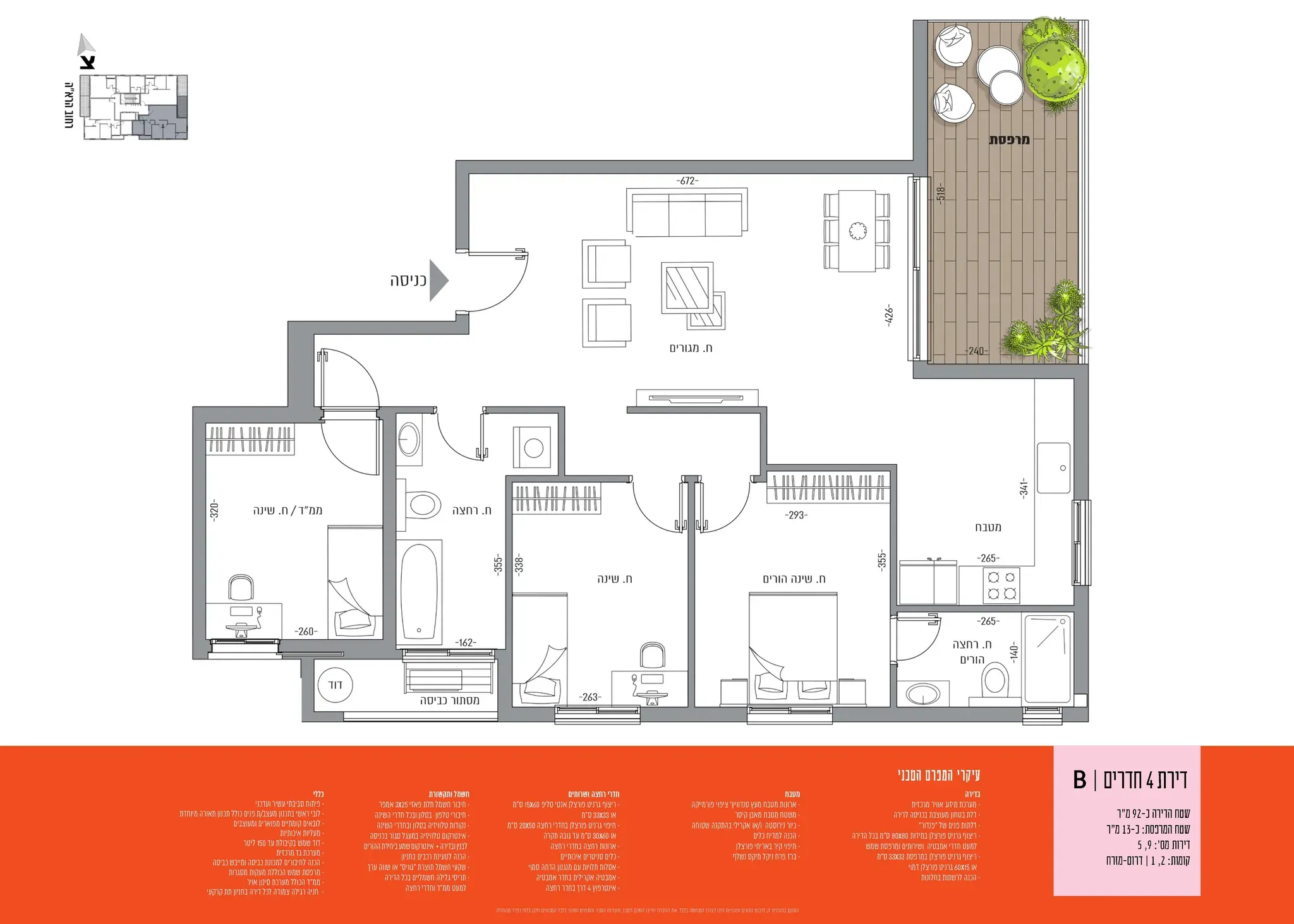 הדירות כולן כוללת חניה פרטית ומרפסת