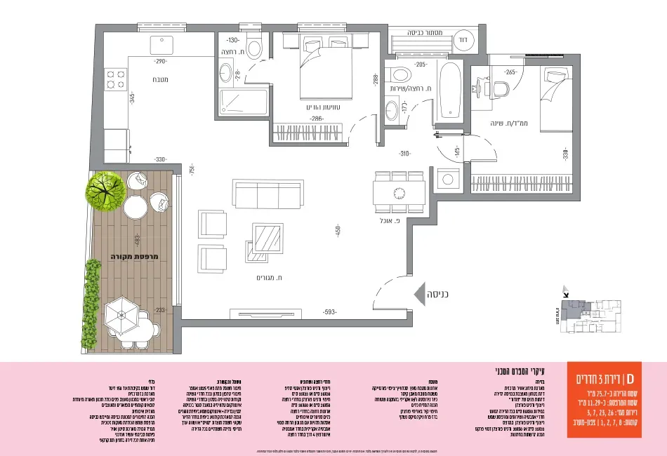 3 חד' • קומה - • 75 מ"ר • 2025