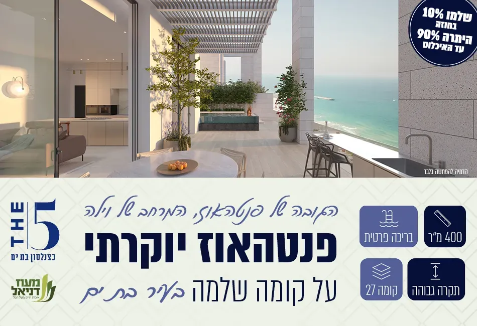 מבית מעוז דניאל מציג דירות מרווחות החל מ-4.5 חדרים, עם תכנון מוקפד ונוף עוצר נשימה לים. פרויקט בבת ים המאופיין בעיצוב יוקרתי ובאיכות בניה גבוהה וממוקם באזור נגיש במיוחד, סמוך לרכבת הקלה ולצירים מרכזיים ,איכלוס בקיץ 2026